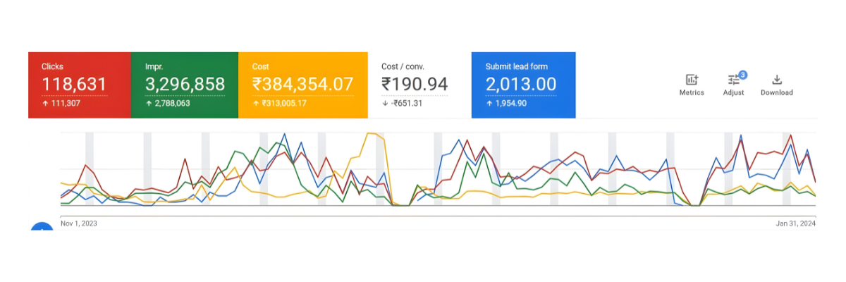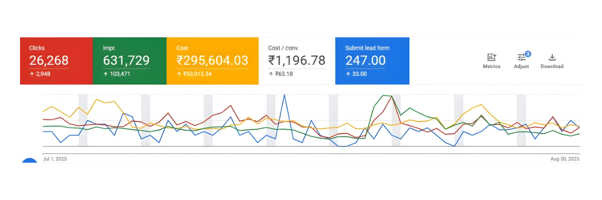 Our lead generation strategy blended deep keyword insights with laser-focused audience targeting to attract students who were actively exploring engineering and management programs. Instead of broad, generic outreach, we prioritized high-intent users, optimized landing pages, and refined messaging based on real-time analytics. This ensured every marketing rupee delivered maximum impact generating not just more leads, but highly qualified inquiries that directly supported IICA’s admission goals.