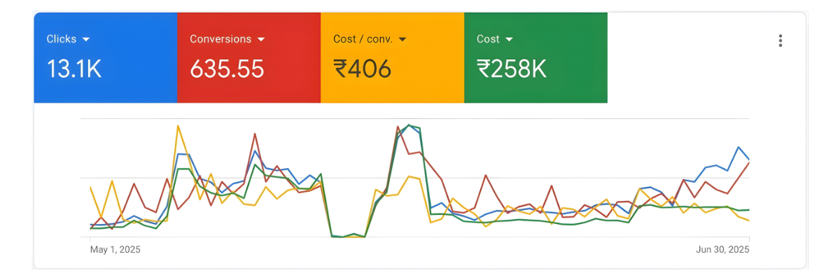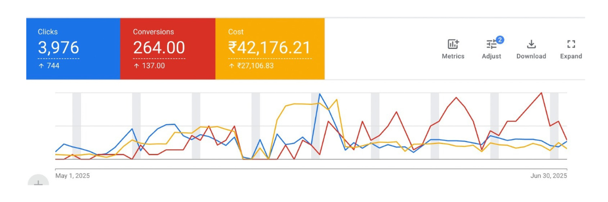 - Continuous Optimisation and Insights-Driven Scaling: Budget allocation was continuously refined based on geography, keyword performance, and lead quality analysis. Ongoing A/B testing helped identify the most effective combinations of CTA, messaging, and ad format.